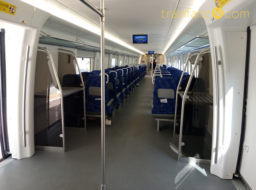 CRH6F车型定员载客量达1502人(包括座席及站席,按每平方米站立4人计算),超员载客量达1998人(包括座席及站席,按每平方米站立6人计算)。列车座位同样采用2+2布置,但座椅不可调节或翻转;列车在3、6号车设卫生间。与CRH6A不同,车门采用宽阔的对开塞拉门,每节车辆侧设有3个塞拉门(头尾车辆有2个,其中一个为驾驶室门)。该车牵引制动性能比CRH6A更优、载客量更大,更适合较短站间距的城际线路和站站停模式使用。